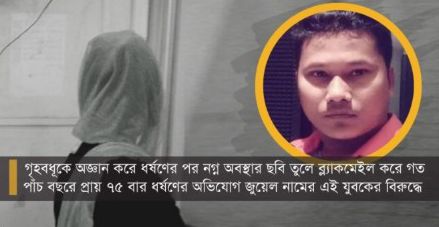 ফেনীতে এক গৃহবধূকে অজ্ঞান করে ধর্ষণের পর নগ্ন অবস্থার ছবি তুলে ব্ল্যাকমেইল করে গত পাঁচ বছরে প্রায় ৭৫ বার ধর্ষণ করেছেন মোবারক হোসেন জুয়েল নামে এক গাড়ি চালক। এছাড়া নগ্ন