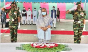 এর আগে সড়ক পথে পদ্মা সেতু পার হয়ে বেলা ১১টা ৪০ মিনিটে টুঙ্গিপাড়ায় পৌঁছেন প্রধানমন্ত্রী। এরপর বেলা ১১টা ৪৫ মিনিটে জাতির পিতা বঙ্গবন্ধুর সমাধি সৌধ বেদীতে পুস্পস্তবক অর্পণ করে গভীর শ্রদ্ধা জানান তিনি। এসময় সেখানে কিছুক্ষণ নীবরে দাঁড়িয়ে থাকেন শেখ হাসিনা।