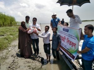 চর রাজিবপুর উপজেলার সদর ইউনিয়নে মুন্সিপাড়া গ্রামে, কোদালকাটি ইউনিয়নে শংকর মাধবপুর, বিলপাড়া, সাজাই আনন্দ বাজার, মোহনগঞ্জ ইউনিয়নে ভেলামারি, এছাড়া চিলমারি উপজেলার বিভিন্ন জায়গায় কাদেরের চর, বড়বেড় চর, সোন্যাসী কান্দী, কাচির চর সহ প্রত্যেক এলাকায় নৌকা দিয়ে গিয়ে ত্রান সামগ্রী বিতরণ করা হয়েছে।
