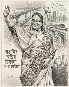 শেখ হাসিনা একহাতে রাষ্ট্রের উন্নয়ন সামলেছেন। বিএনপি ও জামায়াতের পেট্রোল বোমা সন্ত্রাসীদের বোতলবন্দি করেছিলেন। রাশিয়া, ভারত ও চীন তিন শক্তিকে এক সুতোয় গেঁথে বাংলাদেশের সমৃদ্ধি ও উন্নয়নের ইতিহাস ও আধুনিক বাংলাদেশের সৃষ্টি করে গেছেন। শেখ হাসিনাই আমাদের কাছে মাহাথির মোহাম্মদ। মালয়েশিয়ার মাহাথির মোহাম্মদের মতো আর ছয়টি বছর বাংলাদেশের সরকার পরিচালনার সুযোগ পেলে বাংলাদেশ সিঙ্গাপুরের অর্থনীতিকেও একটা সময় ছাড়িয়ে যেতো এতে কোন সন্দেহই নেই। শেখ হাসিনাই চীনের বেল্ট অ্যান্ড রোড ইনিশিয়েটিভ প্রকল্পের সাথে বাংলাদেশকে যুক্ত করে একের পর এক গভীর সমুদ্র বন্দর, ১০০ টা অর্থনৈতিক অঞ্চল, হাজার হাজার হাইটেক পার্ক, বঙ্গবন্ধু স্যাটেলাইট, টানেল , এলিভেটেড এক্সপ্রেসওয়ে, বঙ্গবন্ধু টানেল ও তৃতীয় বিমানবন্দর টার্মিনাল নির্মাণের মাধ্যমে বাংলাদেশকে বিশ্বের ৩০০ কোটি মানুষের বাজারে পরিণত করেছিলেন। এজন্য বলা হয় –